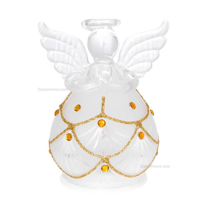 Angelo natalizio in vetro con luci led. Articoli in vetro natale 2025 h cm 9 - oro