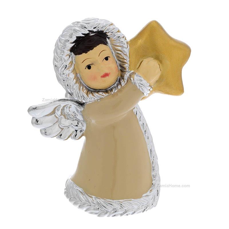 Angelo natalizio in resina argentata. Resine argentate natale 2025 h cm 7,5 - tortora e argento