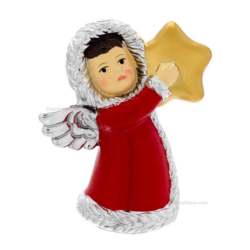 Angelo natalizio in resina argentata. Resine argentate natale 2025 h cm 7,5 - rosso e argento