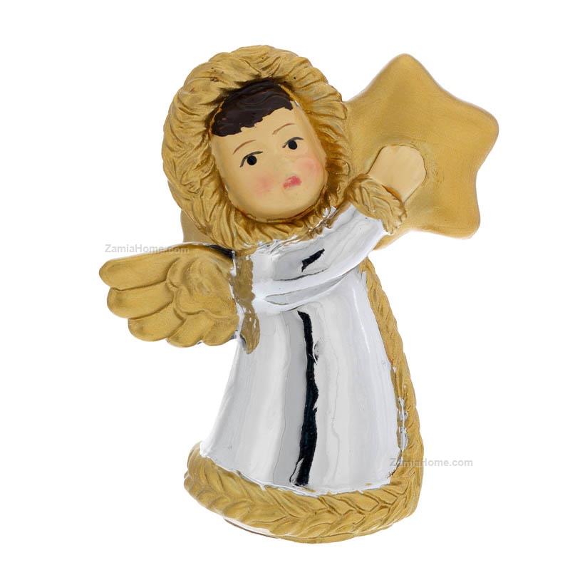 Angelo natalizio in resina argentata. Resine argentate natale 2025 h cm 7,5 - argento e oro
