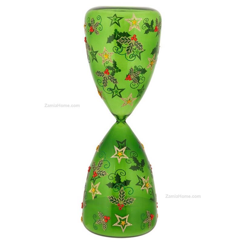 Clessidra natalizia in vetro decorato. Articoli in vetro natale 2025 cm 10 h 30 - verde