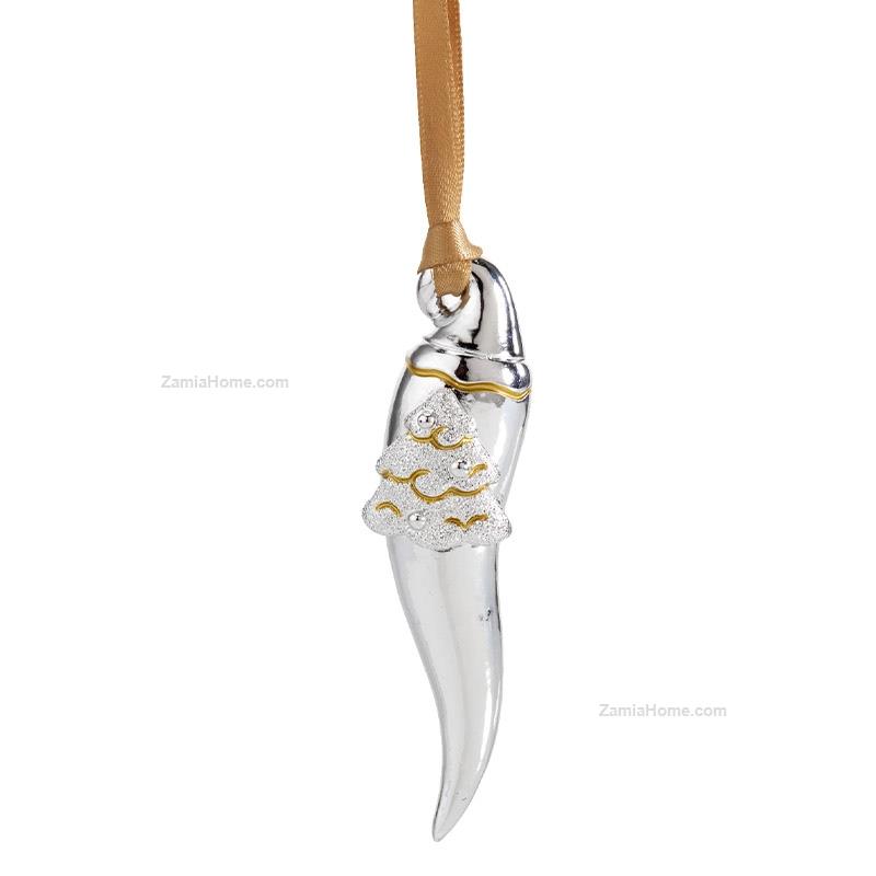 Cornetto portafortuna in resina argentata e dipinta. Resine argentate natale 2025 cm 10 - argento e oro