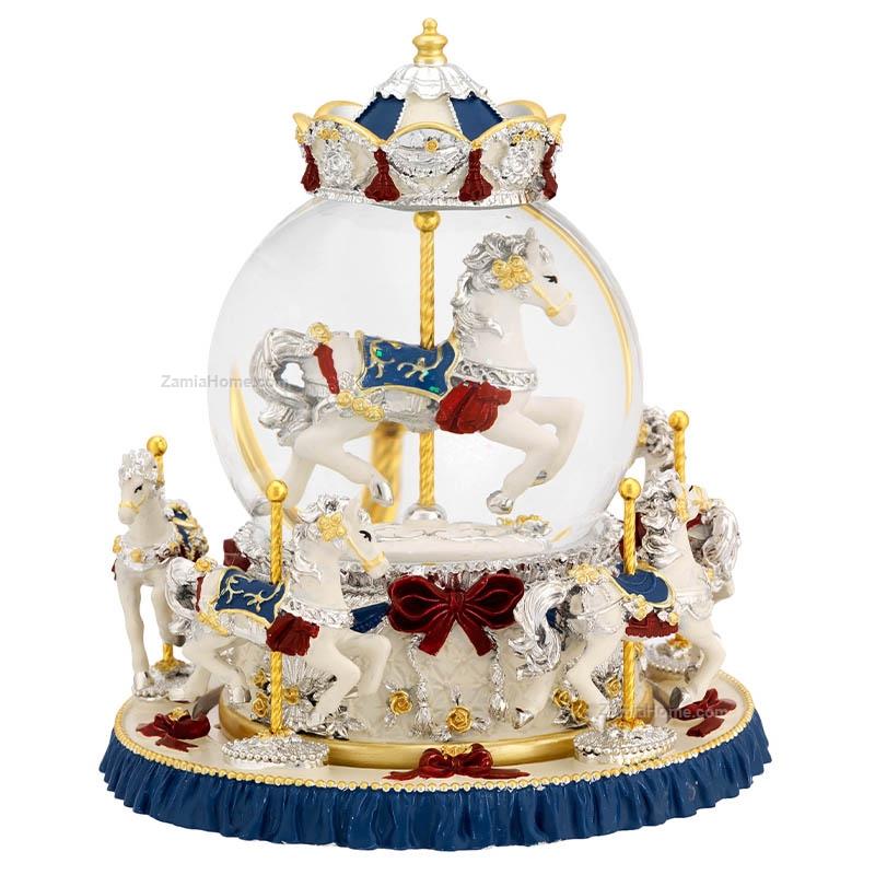 Giostra con carillon in ceramica con dettagli argentati e dipinti. Giostre natale 2025 carillon h cm 19 - blu
