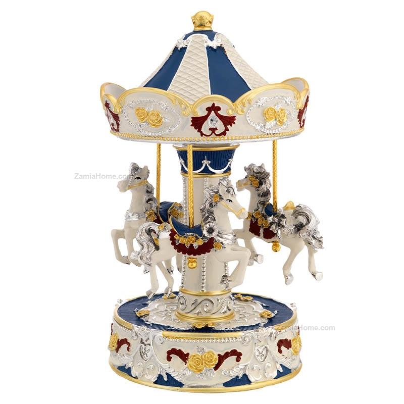 Giostra con carillon in ceramica con dettagli argentati e dipinti. Giostre natale 2025 carillon h cm 22 - blu