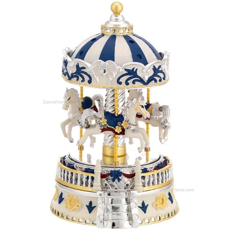 Giostra con carillon in ceramica con dettagli argentati e dipinti. Giostre natale 2025 carillon h cm 16 - blu