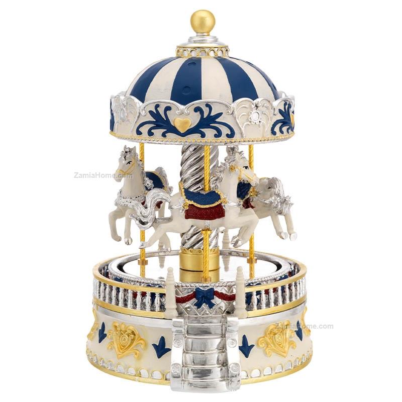 Giostra con carillon in ceramica con dettagli argentati e dipinti. Giostre natale 2025 carillon h cm 20,5 - blu