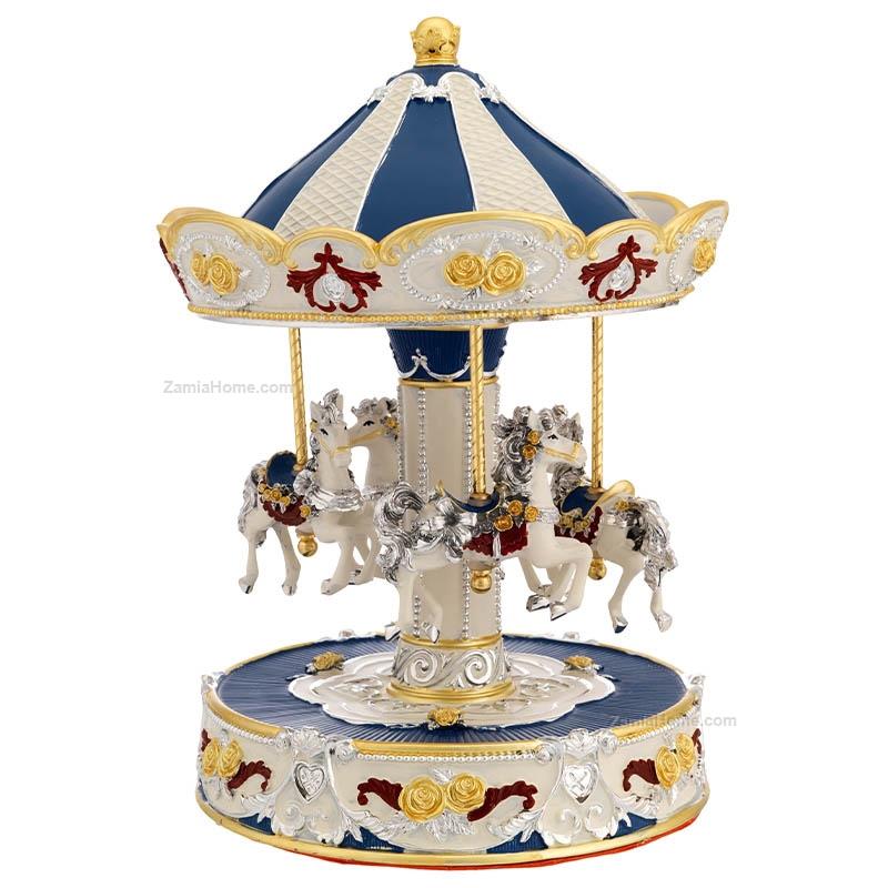 Giostra con carillon in ceramica con dettagli argentati e dipinti. Giostre natale 2025 carillon h cm 26 - blu