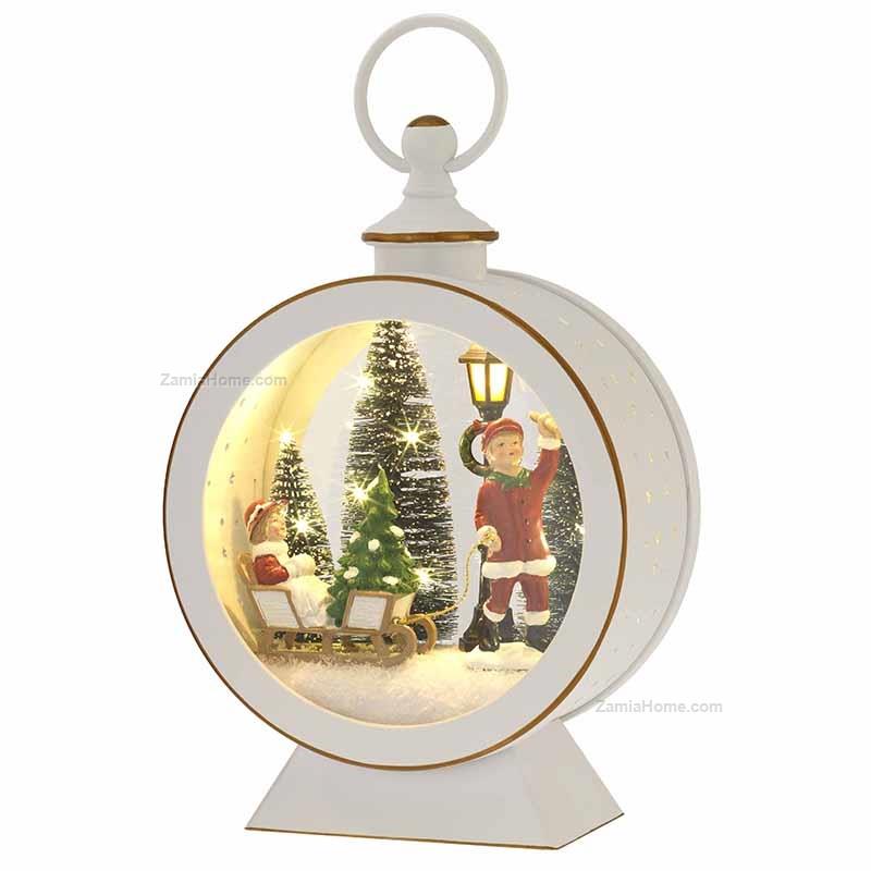 Lanterna natalizia tonda con luci led. natale 2025 h cm 25 - bianca
