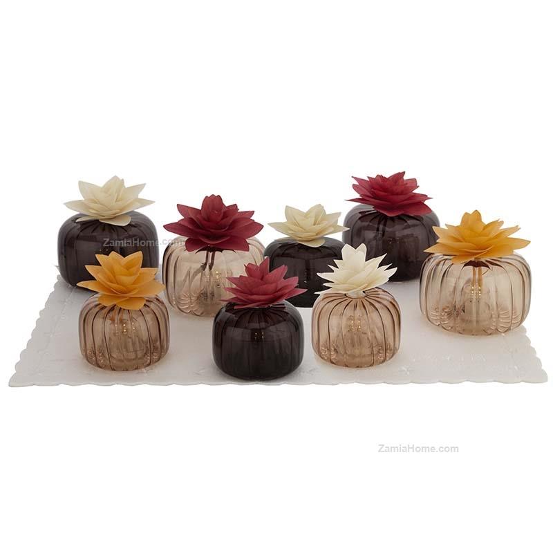 Profumatori in vetro decorato con fiore diffusore, 12 pezzi con espositore. profumatori expokit - 12 pz