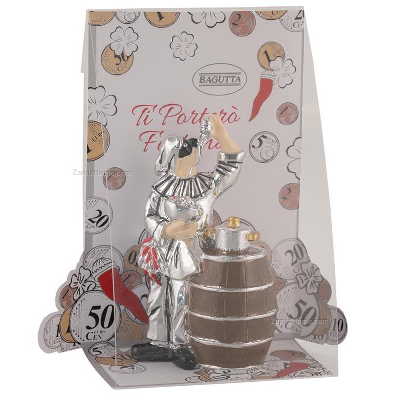 Pulcinella in resina argentata e decorata. Bomboniere resine argentate h cm 9
