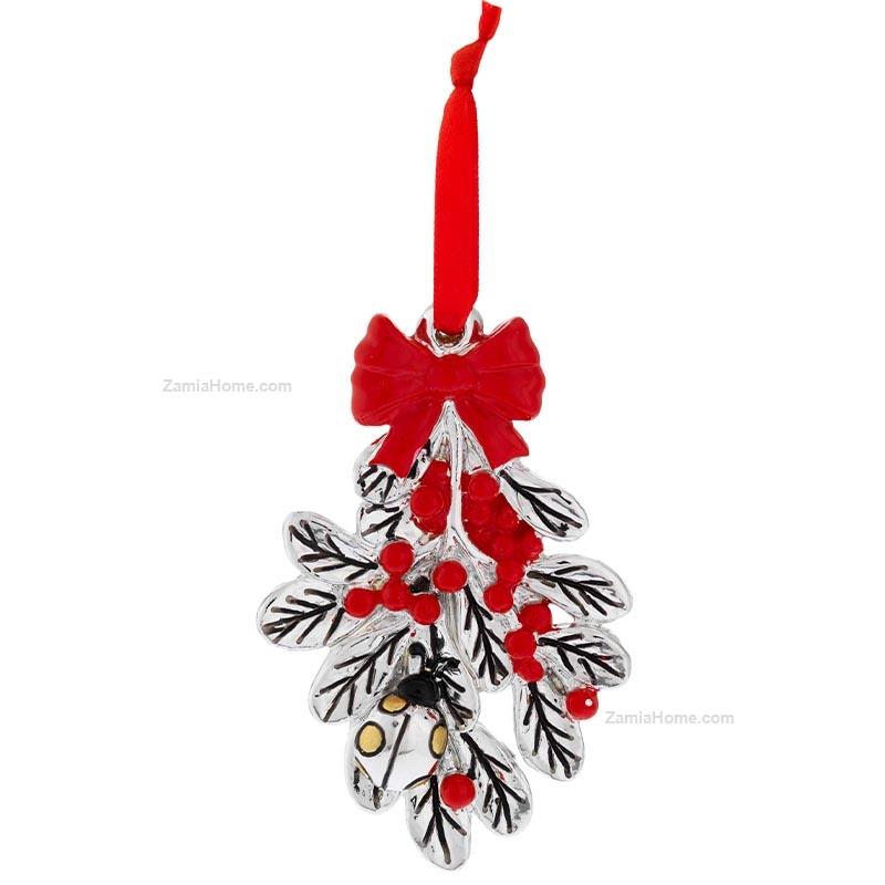 Vischio in resina argentata. Resine argentate natale 2025 cm 6x9 - rosso