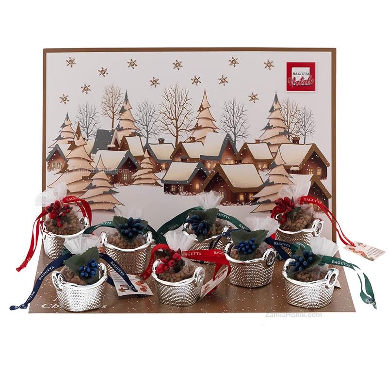 Silver coated resin baskets with lentils, 20 pieces with exhibition stand. Silver coated items christmas 2025 expokit - 20 piecesBrand: Bagutta . Cod. prodotto: bank8644