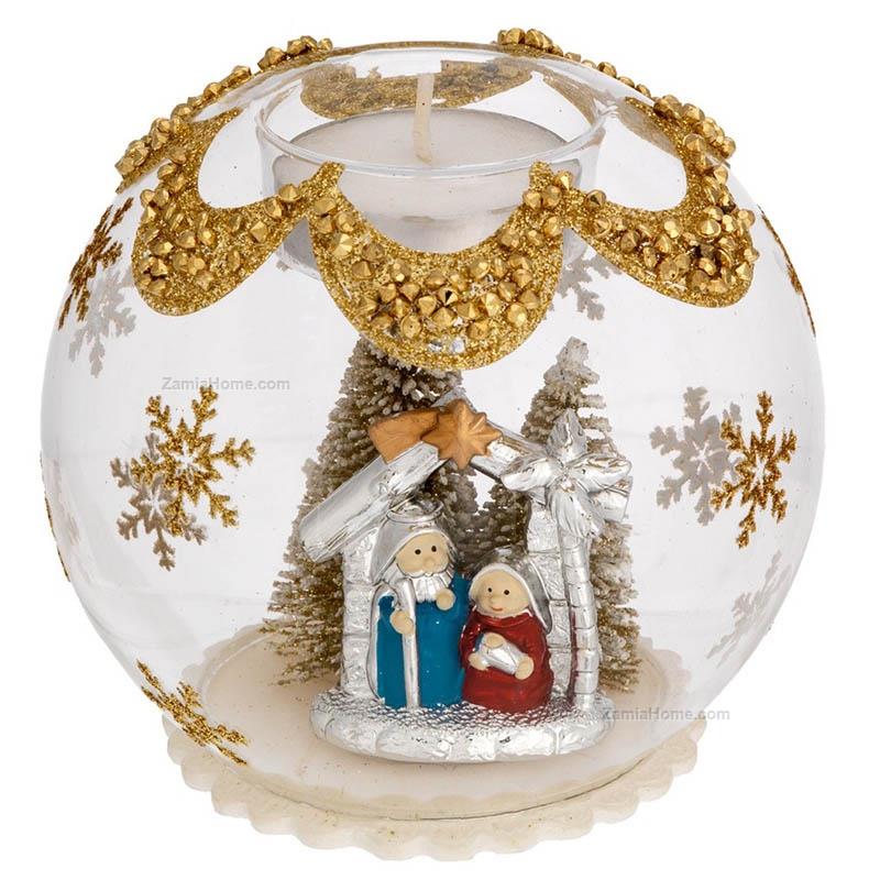 Christmas candleholder sphere with silver coated resin nativity scene. Silver coated items christmas 2025 diam cm 10 - goldBrand: Bagutta . Cod. prodotto: ban8619/8