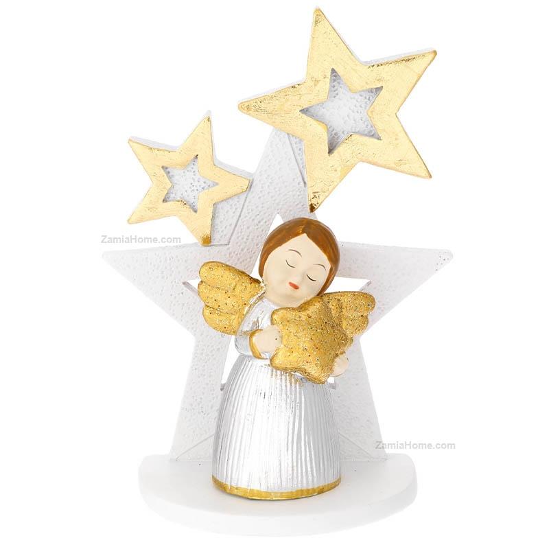 Silver coated resin xmas angel on star shaped base. Silver coated items christmas 2025 h cm 12,5 - goldBrand: Bagutta . Cod. prodotto: ban8605/4m