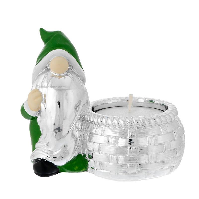 Decorated resin gnome candleholder with tealight. Silver coated items christmas 2025 cm 8x8 - greenBrand: Bagutta . Cod. prodotto: ban8628/ve