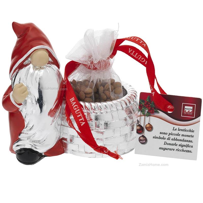 Silver coated and painted gnome with lentils basket. Silver coated items christmas 2025 cm 8 h 8 - redBrand: Bagutta . Cod. prodotto: ban8593/ro