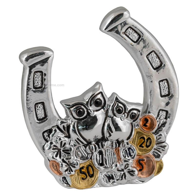 Silver coated resin lucky horseshoe. silver coated items h cm 5 - with owlsBrand: Bagutta . Cod. prodotto: ba2282/3