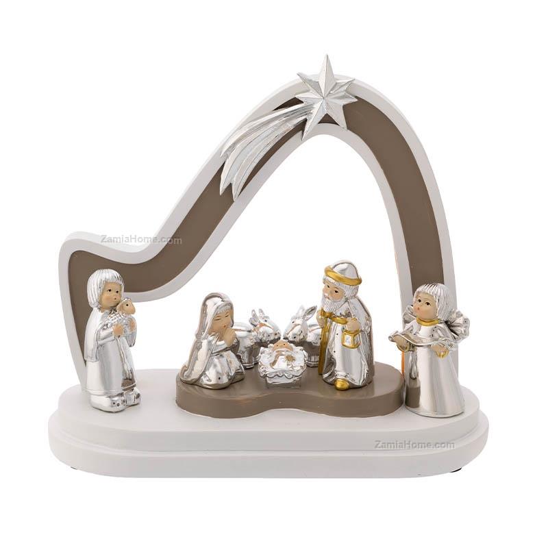 Decorated resin nativity scene with led lights. Silver coated items christmas 2025 cm 9x21 h 19 - brownBrand: Bagutta . Cod. prodotto: ban8642/3