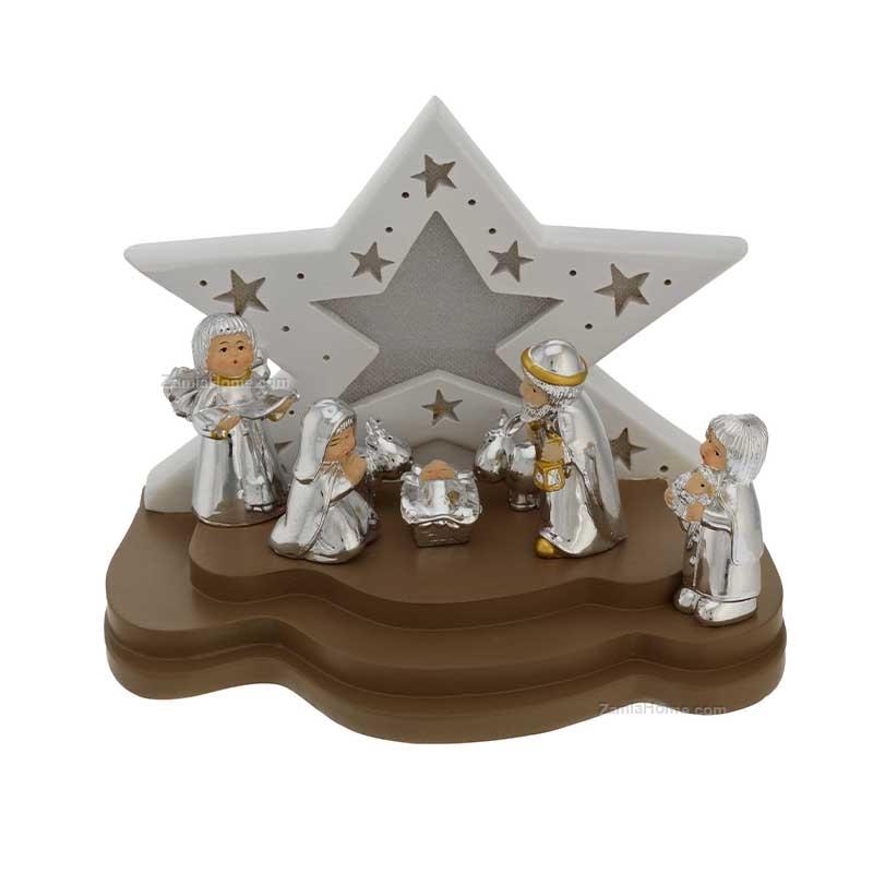 Silver coated and painted resin nativity scene with led lights. Silver coated items christmas 2025 cm 18x12 h 14Brand: Bagutta . Cod. prodotto: ban8675/3