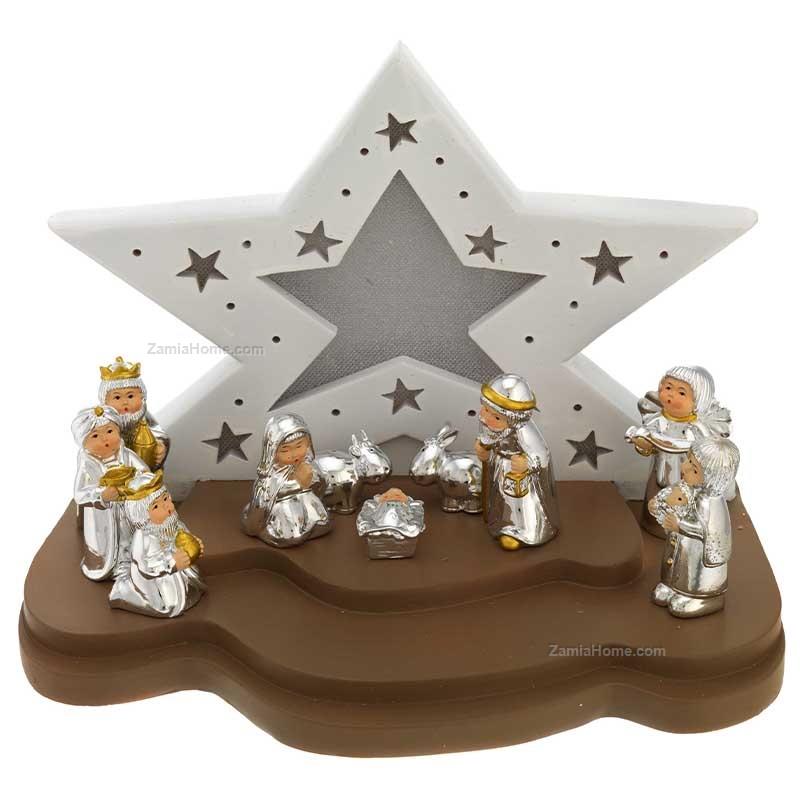 Silver coated and painted resin nativity scene with led lights. Silver coated items christmas 2025 cm 24x16 h 18Brand: Bagutta . Cod. prodotto: ban8675/4
