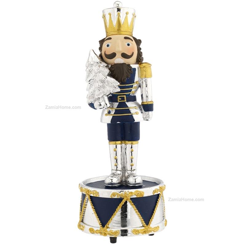 Silver coated and painted resin nutcracker soldier with xmas tree. Silver coated items christmas 2025 h cm 19 - blueBrand: Bagutta . Cod. prodotto: ban8596/2
