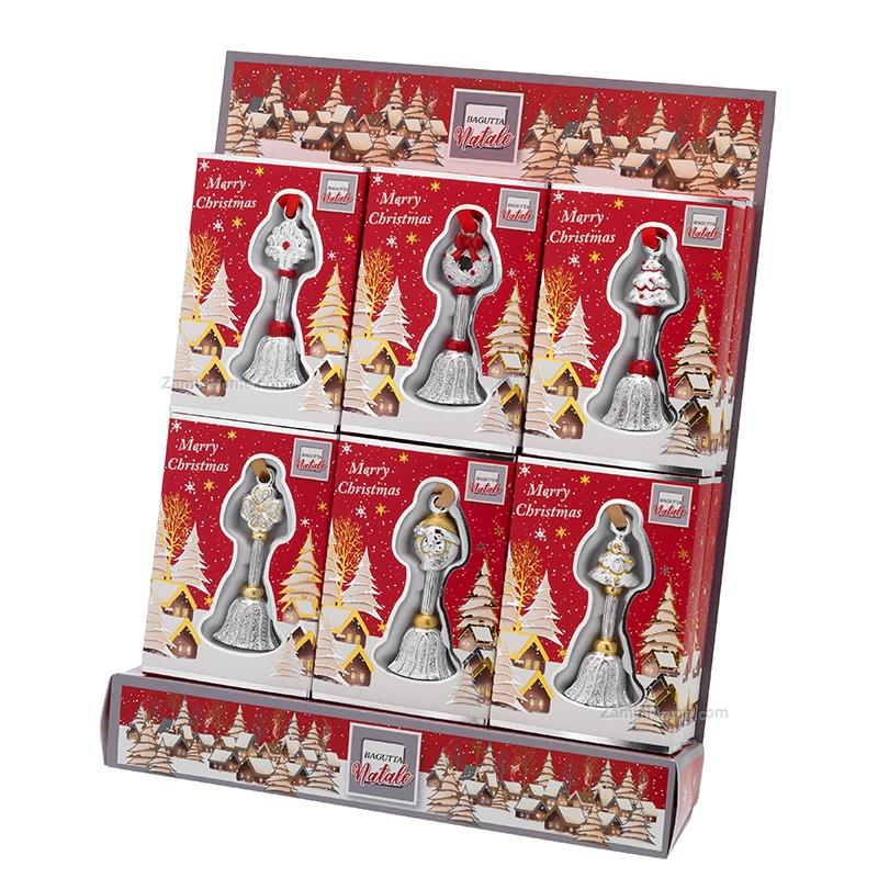 Silver coated resin small xmas brooms, 16 pieces with exhibition stand. Silver coated items christmas 2025 expokit - 16 pcsBrand: Bagutta . Cod. prodotto: bank8608