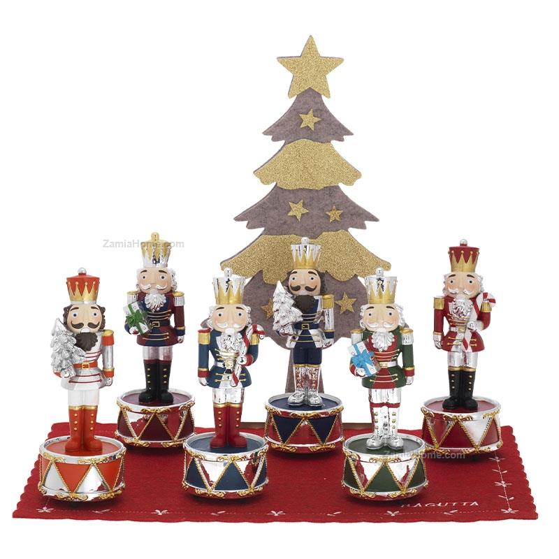 Silver coated and painted resin nutcracker soldiers, 6 pieces with exhibition stand. Silver coated items christmas 2025 expokit - 6 pcsBrand: Bagutta . Cod. prodotto: bank8596
