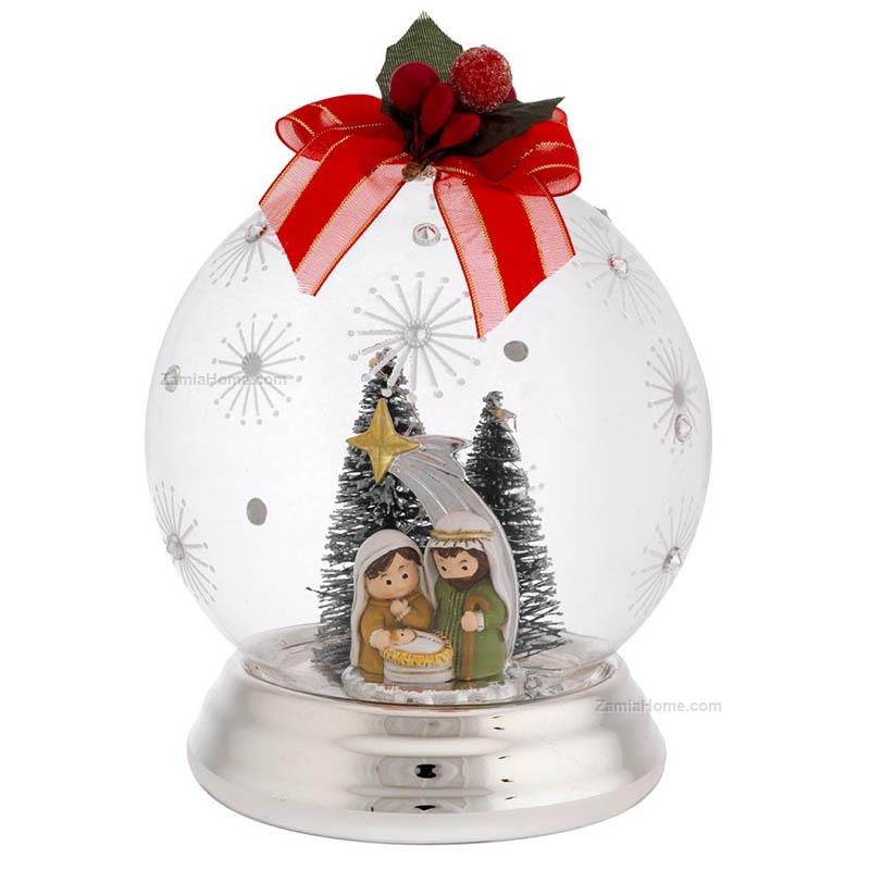 Glass xmas sphere with silver coated resin nativity scene. Silver coated items christmas 2025 diam cm 12 - silverBrand: Bagutta . Cod. prodotto: ban8620/2