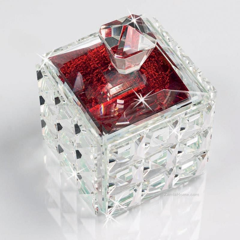 Crystal box with red lid. Crystalware christmas 2025 centerpieces & boxes cm 10x10 h 14Brand: Ranoldi . Cod. prodotto: rant108