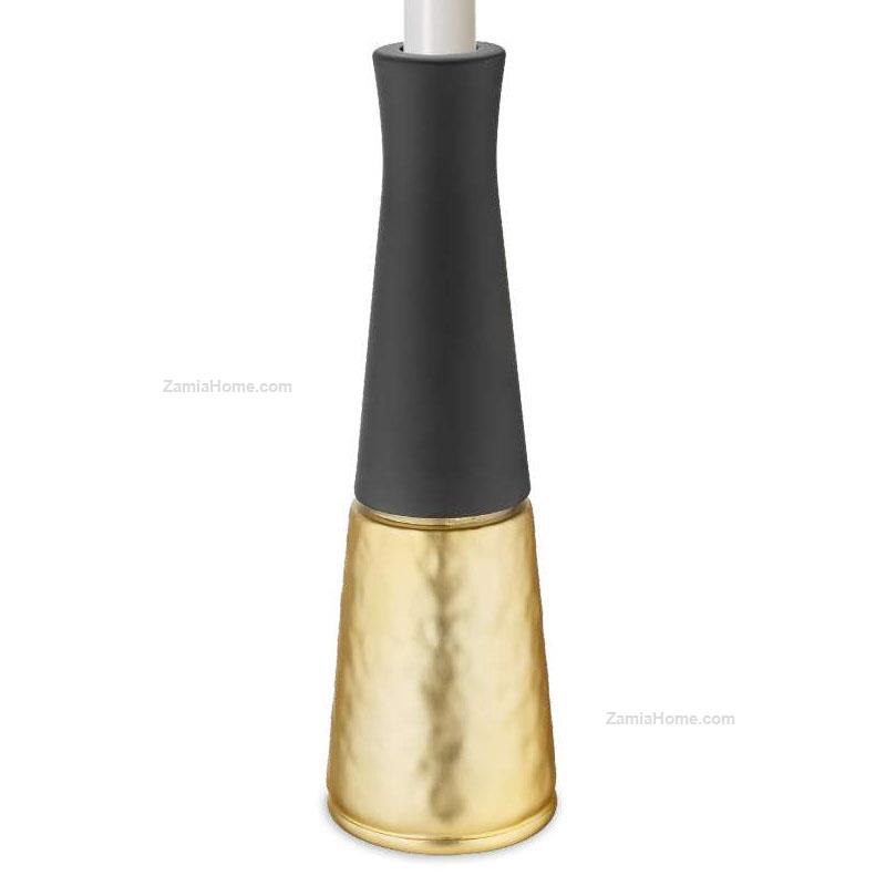 Resin candleholder with golden base. silver coated items diam cm 6,5 h 22,5 - blackBrand: Valenti & co. . Cod. prodotto: vlr18455/ne