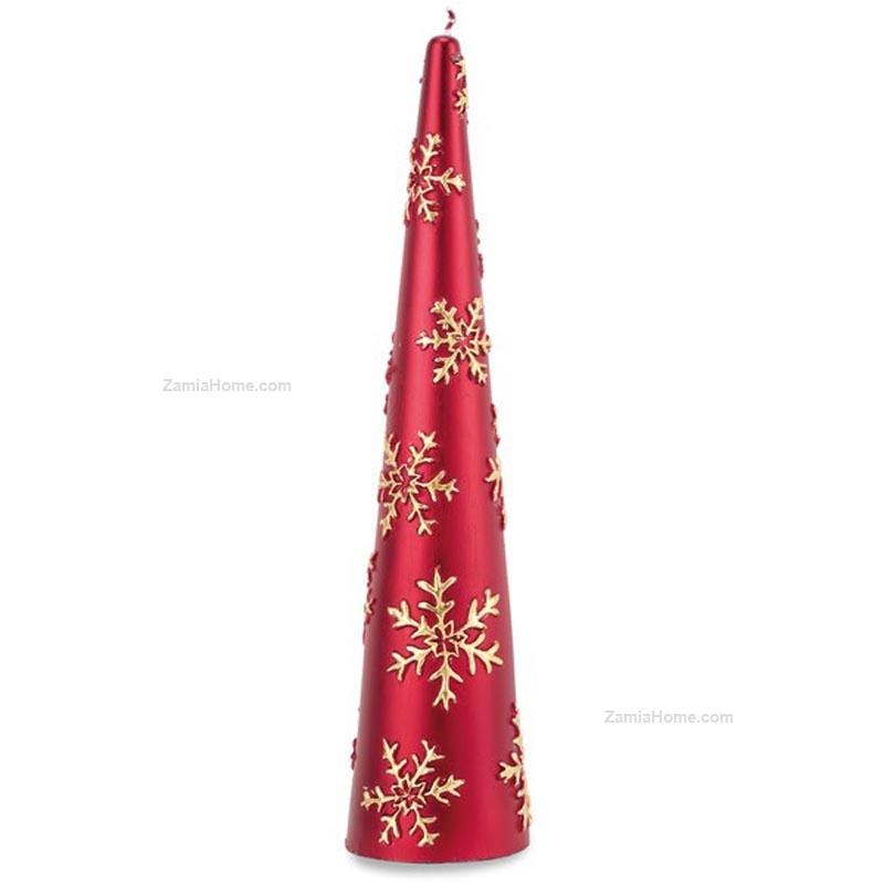 Candela natalizia in cera decorata collezione "snowflake". natale 2025 cm 7 h 30 - cono