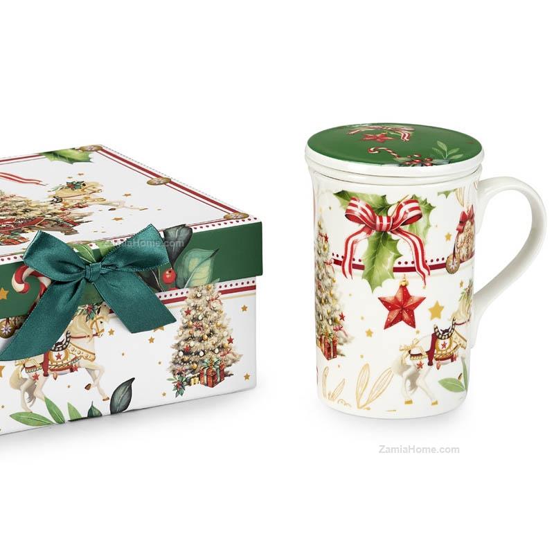 Mug con filtro e coperchio in new bone china con astuccio regalo collezione "astro". Tavola e arredo natale 2025 tazze cm 18x16,5x8