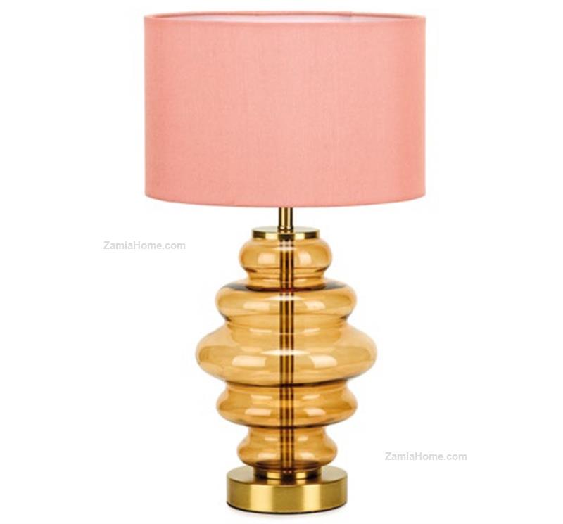 Lampada da tavolo in vetro e metallo dorato linea "halyn". Lampade tavola e arredo cm 25 h 42 - ambra