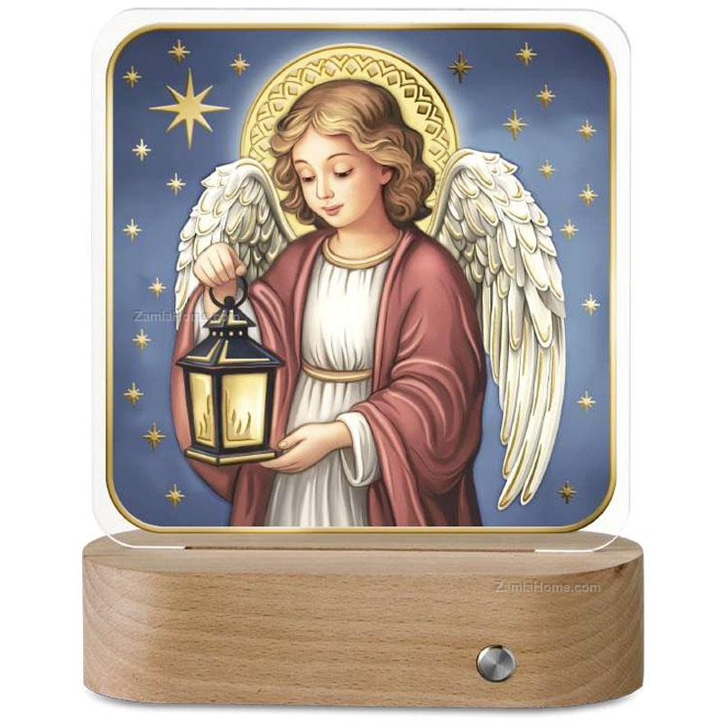 Lampada in plexi e legno angelo natalizio con foglia oro. natale 2025 cm 14,5x18